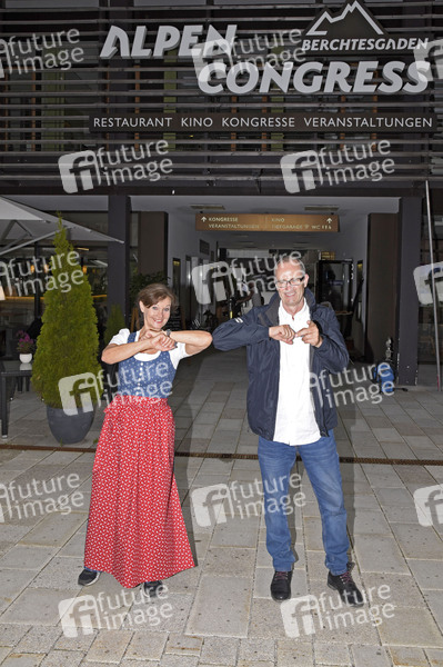 Barbara Weinzierl und Jörg Schneider bei einem exklusiven Fototermin in Berchtesgaden, wo gerade die Dreharbeiten zur Fernsehserie 'Watzmann ermittelt' nach dem Corona Lockdown wieder aufgenommen wurden. Berchtesgaden, 01.07.2020