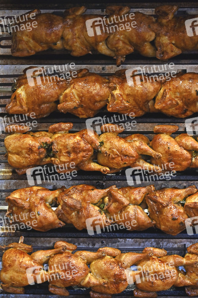 Grillhähnchen, Broiler, Feature, Unterhaltung, Entertainment, Kultur, Fest, Volksfest, 190. Wiesn, Wies'n, Fahrgeschäft, Vergnügungsattraktion, Schausteller, Festzelt, Festzelte, Vergnügen, Alkohol, Bier, Maß, Alkoholkonsum, Trachten, Brauerei, Brauereien, Gastronomie, Wiesnbesucher, Menschenmassen, Symbolfoto, Symbolbild, Themenbild, Themenfoto