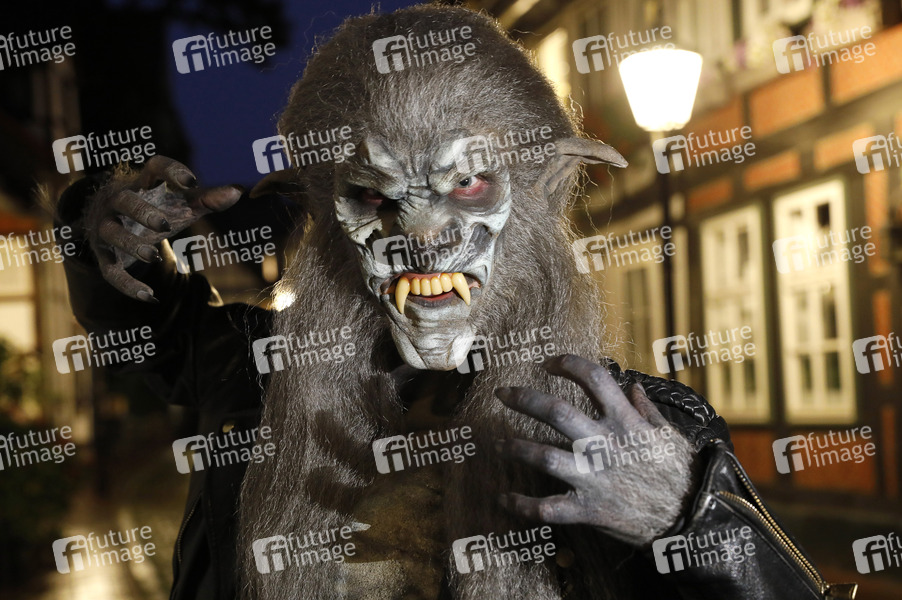 Farbkörper Cosplay, Cosplayer, Bodypainting, Body-Painting, Make-up, Latexappliaktionen, Latexteile, Maskenbildnerei, Maskenbildner, Körperkunst, Körperfarben, Projekt Farbkörper, Farbe, Bemalung, Kunst, Malerei, Fabelwesen, Horror, Abend, Nacht, Nachtaufnahme, Gasse, Mythologie, Wolf, Wolfsmensch, Lykanthropie, Vollmond, body painting, body art, project color body, colors, mythical creature, night, aley, mythology, wolf man, lycanthropy, full moon