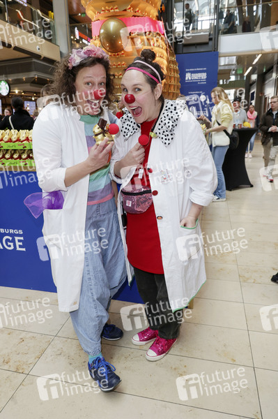 Die Klinik-Clowns beim Charity Verkauf von Lindt Osterhasen zu Gunsten der Hamburger Tafel e.V. und der Budnianer Stiftung in der Europa Passage. Hamburg, 14.03.2024