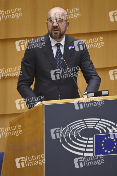 Charles Michel bei der Debatte über die Aggression Russlands gegen die Ukraine im Plenarsaal des Europäischen Parlaments. Brüssel, 01.03.2022