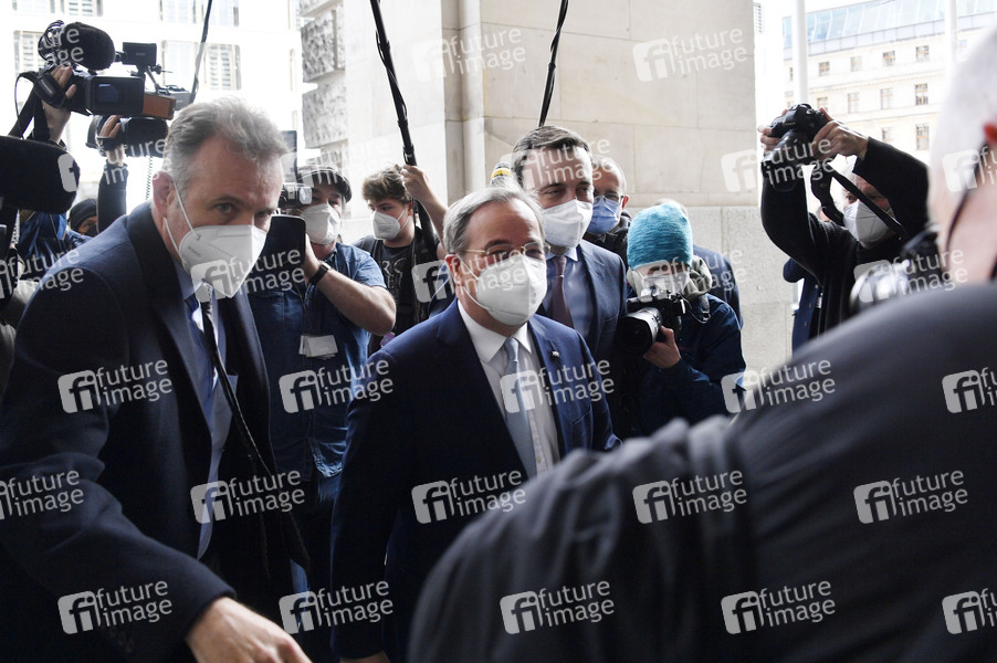 Armin Laschet und Paul Ziemiak bei der Ankunft zur CDU Fraktionssitzung im Reichstagsgebäude. Berlin, 13.04.2021