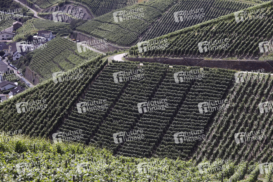 Weinberge im Ahrtal bei Dernau. Die Region wurde durch das Jahrhundert-Hochwasser 2021 schwer getroffen. Dernau, 15.07.2021