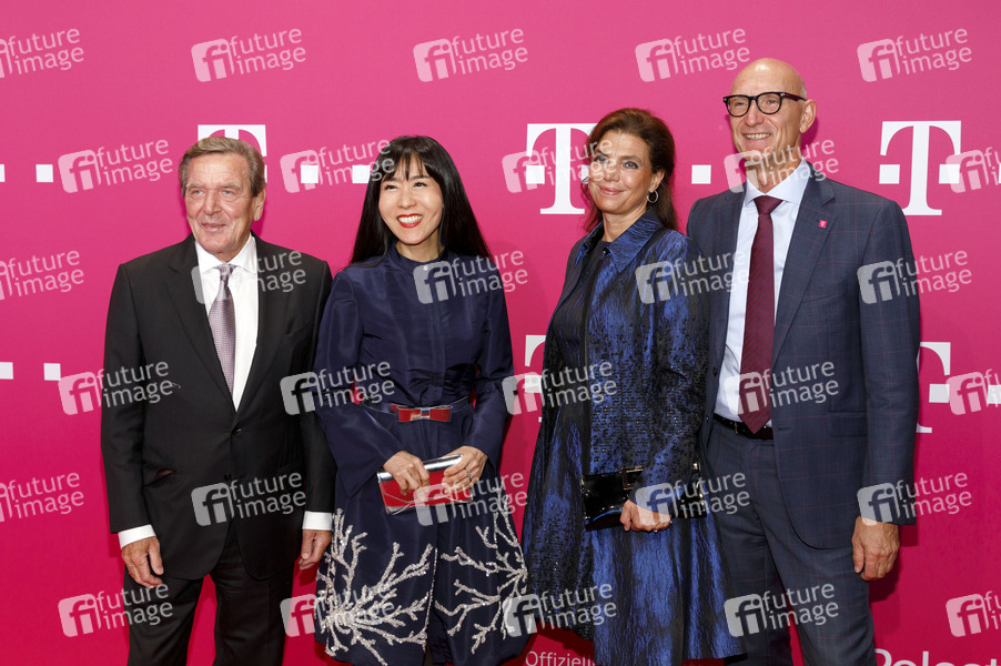 Gerhard Schröder mit Ehefrau So-yeon Schröder-Kim, Tim Höttges mit Ehefrau Adriane