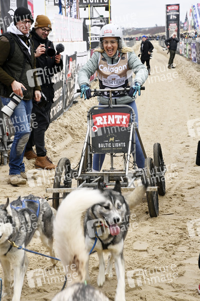 Susan Sideropoulos beim 9. Baltic Lights 2025 Charity-Schlittenhunderennen zu Gunsten der Welthungerhilfe zwischen der Seebrücke Ahlbeck und der Seebrücke Heringsdorf. Heringsdorf, 01.03.2025