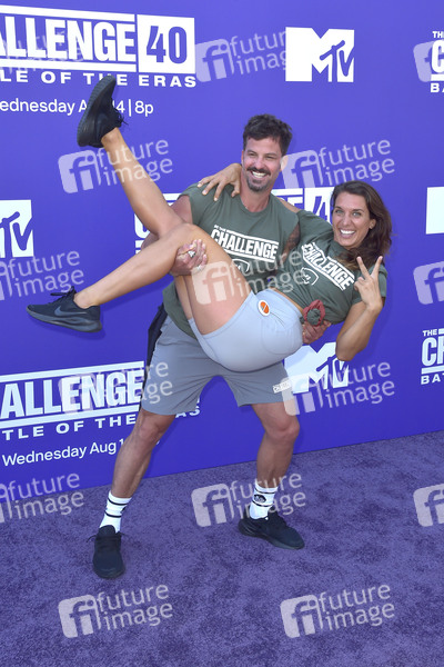 Johnny 'Bananas' Devenanzio und Emily Schromm bei der 40. Staffel der MTV-Reality-Wettbewerbsserie 'The Challenge 40: Battle of the Eras' im Los Angeles Memorial Coliseum. Los Angeles, 09.08.2024