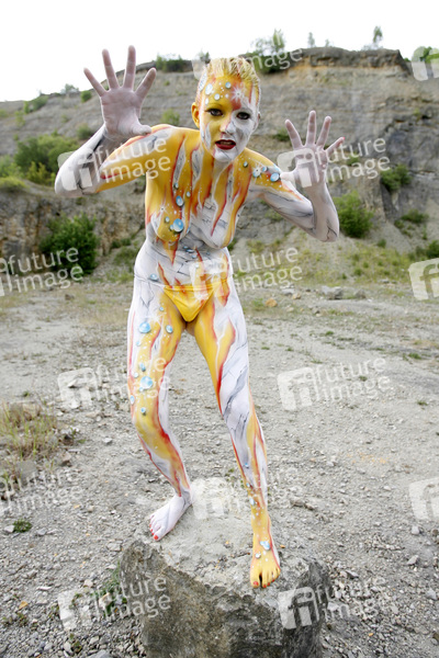 Model-Shooting für das Cover des SOLsnap Magazins zum Thema Bodypainting. Künstler: Jörg Düsterwald. Leser können ihr Foto auf die Website des Magazins einstellen und sich damit zur Wahl des Cover-Model des Monats stellen.