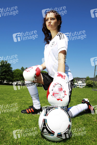 SOLsnap Cover-Model Juni 2012, Zuebeyde, Fußball, Fußballspielerin, Trikot, Ball, Boxhanschuhe