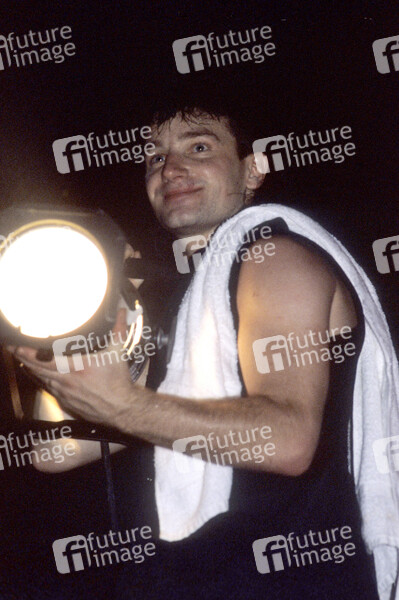 Bono von U2 live bei einem Konzert der 'The Unforgettable Fire'-Tour in der Wembley Arena. London, 14.11.1984