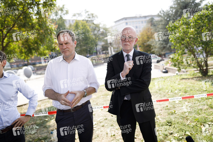 Stadtdirektor Stephan Keller und Polizeipräsident Uwe Jacob bei der Pressekonferenz zum laufenden Stand der Ermittlungen nach dem Tötungsdelikt am Ebertplatz. Köln, 25.08.2019