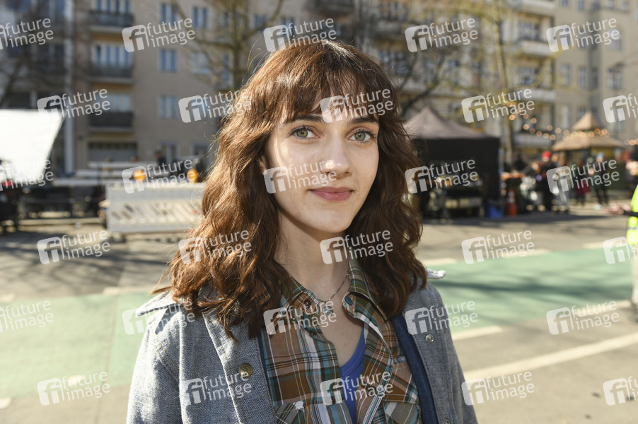 Marie Louise Albertine Becker beim Fototermin am Set der ZDF Serie 'Ku'damm 77' in der Richard-Wagner-Straße. Berlin, 28.03.2025