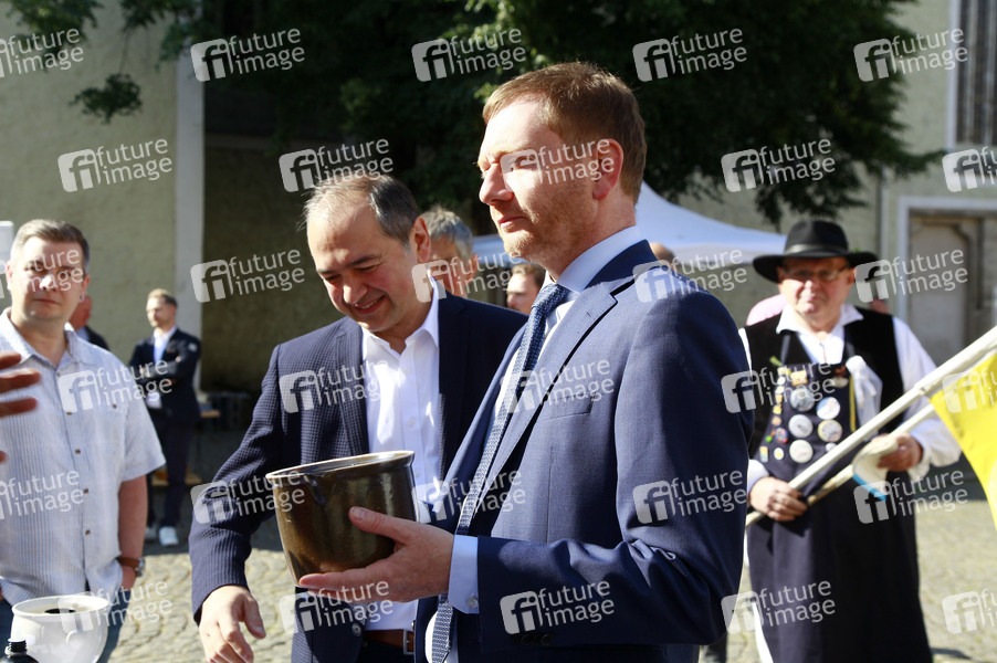 Oberbürgermeister Octavian Ursu und Ministerpräsident Michael Kretschmer bei der Eröffnung vom 22. Schlesischen Tippelmarkt. Görlitz, 18.07.2020