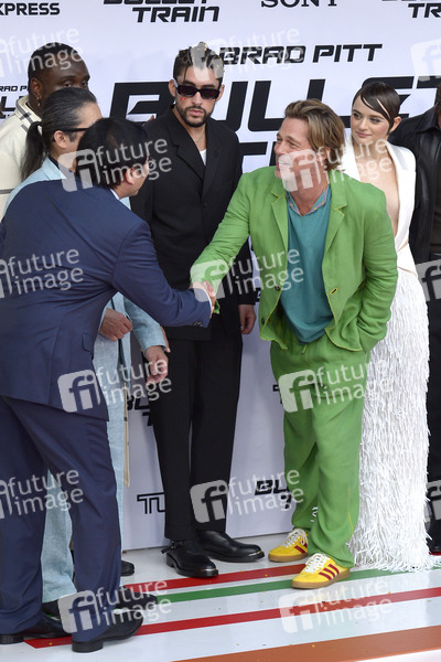 Hiroyuki Sanada, Brian Tyree Henry, Masi Oka, Bad Bunny, Brad Pitt und Joey King bei der Premiere des Kinofilms 'Bullet Train' im Regency Village Theatre. Los Angeles, 01.08.2022