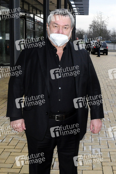 Waldemar Hartmann bei der Ankunft zur Aufzeichnung der MDR-Talkshow 'Riverboat' im Studio 3 der Media City Leipzig. Leipzig, 09.04.2021