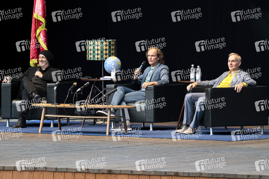 Torsten Sträter, Olaf Schubert und Johann König bei der Open Air Comedy-Show 'Schubert, Sträter und König - Gipfeltreffen Live! ' in der Freilichtbühne Großer Garten. Dresden, .31.08.2020