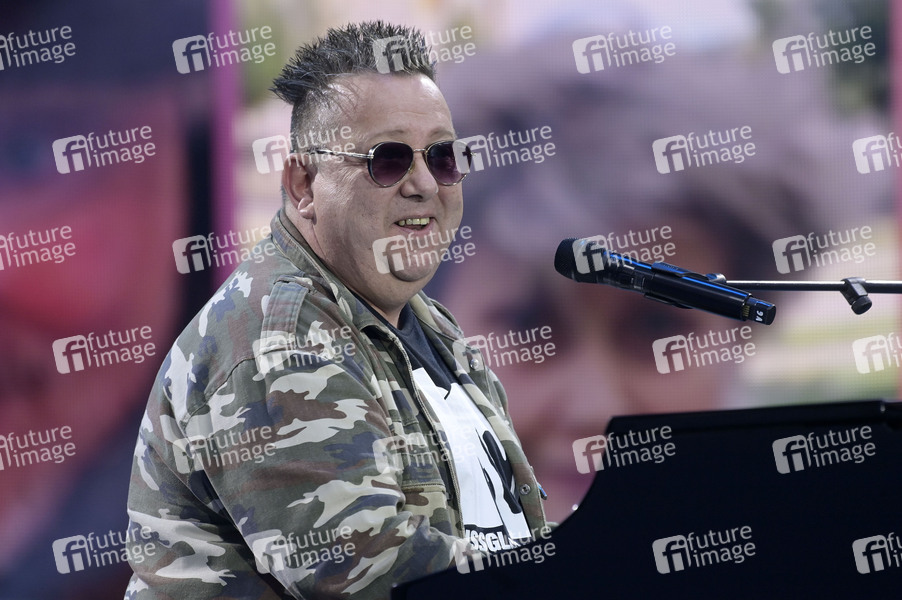 Sebastian Krumbiegel von Die Prinzen live bei der Abschlussveranstaltung auf dem Demokratiefest zu 75 Jahren Grundgesetz auf der Bühne zwischen Kanzleramt und dem Deutschen Bundestag. Berlin, 26.05.2024