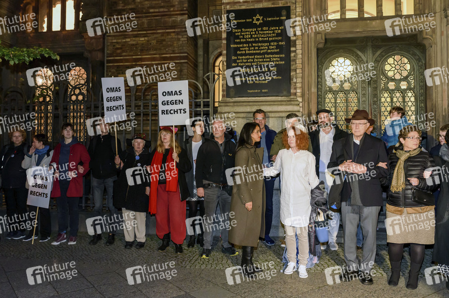 Staatssekretärin Sawsan Chebli und Kantorin bei der Mahnwache vor der Neuen Synagoge in Berlin nach dem Anschlag auf die Synagoge in Halle (Saale) bei der zwei Menschen getötet wurden. Berlin, 09.10.2019