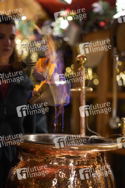 Zubereitung einer Feuerzangenbowle auf dem Weihnachtsmarkt am Roten Rathaus. Berlin, 02.12.2022
