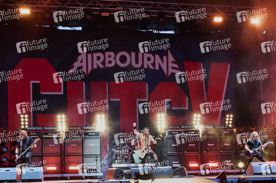 Justin Street, Ryan O'Keeffe, Joel O'Keeffe und Brett Tyrell von Airbourne live auf dem Summerside Festival 2025 beim Flugplatz. Grenchen, 28.06.2025