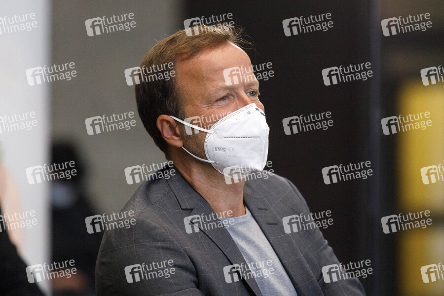 Georg Restle hält die Laudatio auf Carola Rackete, die die mit 10.000 Euro dotierte Auszeichnung für ihr besonderes Engagement in der Flüchtlingshilfe erhält, bei der Verleihung des Karl-Küpper-Preises, der dieses Jahr zum 1. mal in Köln an Menschen vergeben wird , die sich für den Schutz der Demokratie und gegen Rassismus, Antisemitismus und jede Form der Diskriminierung engagieren, im Rathaus. Köln, 19.10.2020
