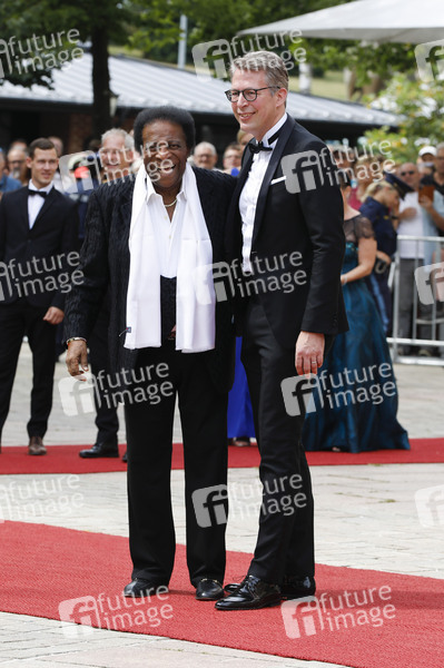 Roberto Blanco und Markus Blume bei der Eröffnung der 112. Richard-Wagner-Festspiele 2024 mit der Neuinszenierung von 'Tristan und Isolde' im Bayreuther Festspielhaus. Bayreuth, 25.07.2024