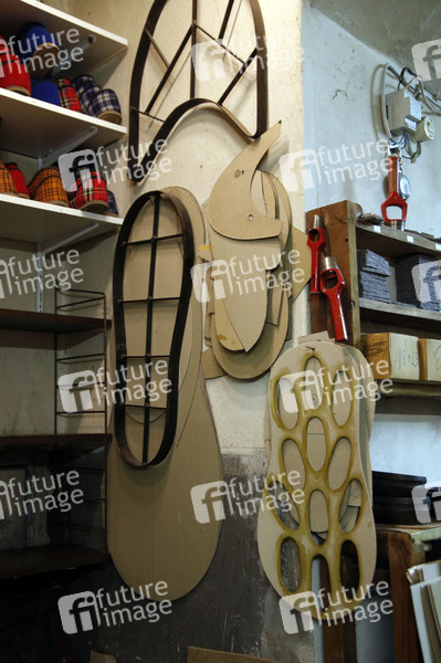 Die Werkstatt von Reno Jünemann. Schuhmacher Reno Jünemann führt in 4. Generation das Unternehmen Jünemann's Pantoffeleck in Berlin Mitte. Seit 113 Jahren befindet es sich im Familienbesitz. Berlin, 22.04.2021