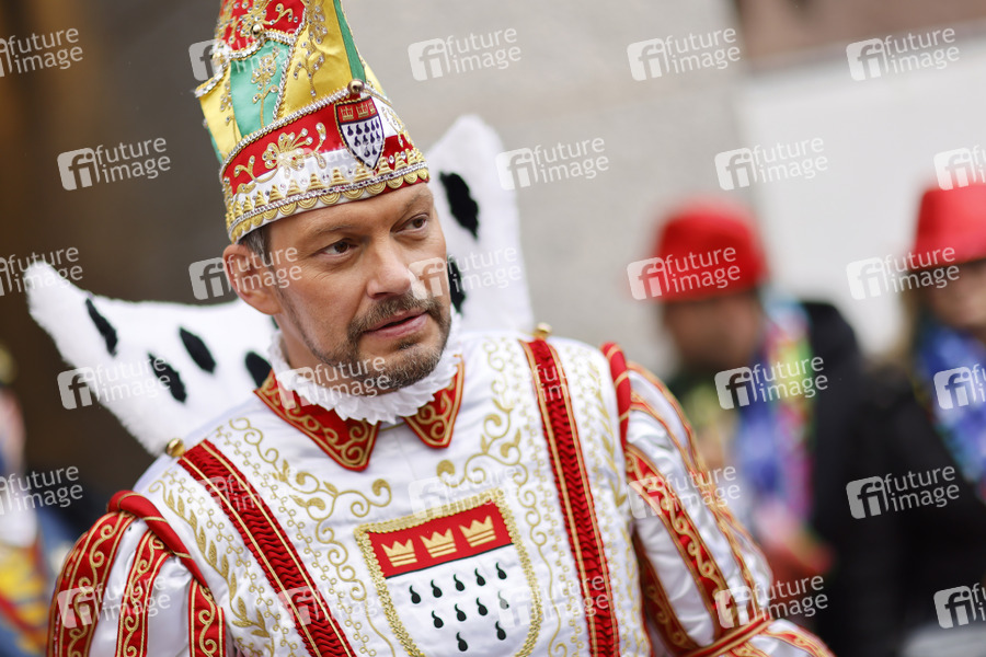 Um Punkt 11:11 Uhr an Weiberfastnacht (24.02.2022) beginnt in Köln trotz Krieg in der Ukraine der Straßenkarneval. Auch Prinz Sven I. (Sven Oleff) vom Kölner Karnevalsverein Traditionskorps Altstädter 1922 e.V. ist unter den Feiernden. Die Stadt Köln hat die gesamte Stadt zu einer Brauchtumszone erklärt, in der für die feiernden bestimmte Corona-Regeln gelten. Köln, 24.02.2022