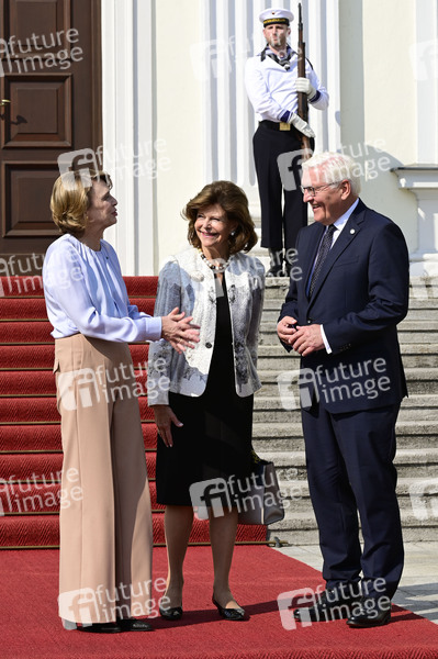 Elke Büdenbender, Königin Silvia von Schweden und Frank-Walter Steinmeier beim Empfang von Königin Silvia von Schweden und Eintrag in das Gästebuch im Schloss Bellevue. Berlin, 18.09.2024