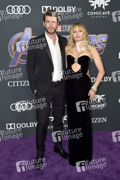 Liam Hemsworth mit Ehefrau Miley Cyrus bei der Weltpremiere des Kinofilms 'Avengers: Endgame' im Los Angeles Convention Center. Los Angeles, 22.04.2019