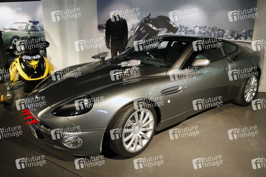 Aston Martin V12 Vanquish aus 'Die Another Day / James Bond 007 - Stirb an einem anderen Tag' in der James Bond Ausstellung 'Bond in Motion' im London Film Museum. London, 13.07.2016