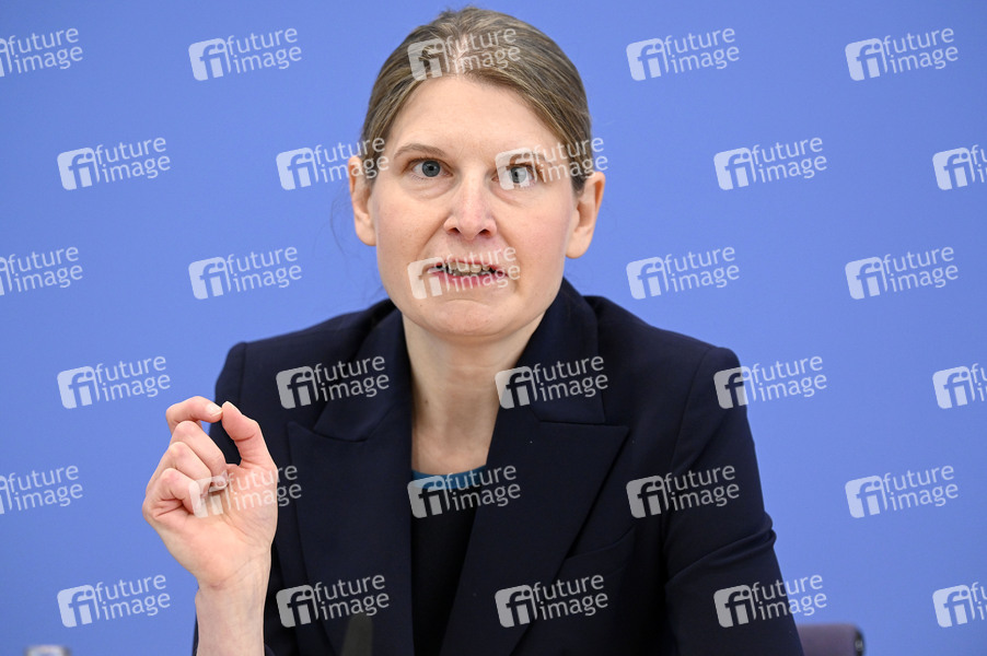Leonie Sundmacher bei der Bundespressekonferenz Vorstellung Gutachten: 'Was muss die neue Bundesregierung unternehmen, damit innovative Arzneimittel weiter allen Patienten zur Verfügung stehen?' im Haus der Bundespressekonferenz. Berlin, 22.05.2025