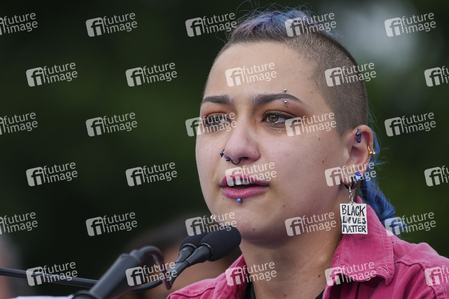 Waffenkontrollaktivistin X Gonzalez spricht auf dem March for Our Lives. Tausende Menschen demonstrieren gegen die landesweite steigende Waffengewalt und fordern den Kongress auf, Schritte zu ihrer Beendigung zu unternehmen. March for Our Lives wurde von Überlebenden der Massenschießerei 2018 an einer High School in Parkland, Florida gegründet. Washington, 11.06.2022
