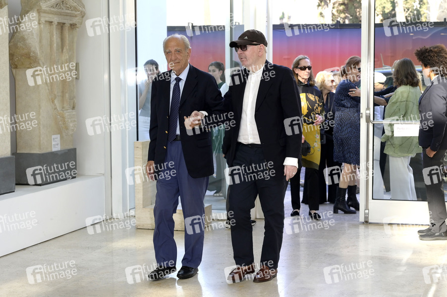 Quirino Conti mit Begleitung bei der Veranstaltung 'La Scienza e il Cinema - Immaginare il futuro / Wissenschaft und Kino - Vorstellung der Zukunft' der Carla Fendi Foundation im Museo dell'Ara Pacis. Rom, 10.06.2025