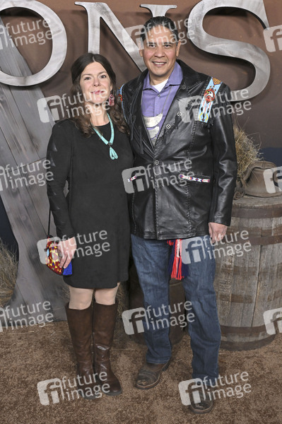 Mary Kathryn Nagle und Jonodev Chaudhuri bei der Premiere der Netflix-Serie 'The Abandons' im Netflix Tudum Theater. Los Angeles, 03.12.2025