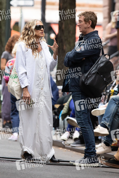 Sarah Jessica Parker und Michael Patrick King bei den Dreharbeiten zur HBO Max TV-Serie 'And Just Like That....', der Nachfolgeserie zu 'Sex and the City', in der Perry Street. New York, 17.09.2021