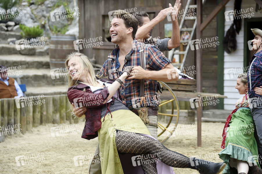 Larissa Marolt und Raul Richter beim Pressetermin der Karl-May-Spiele 2019 mit Szenen aus 'Unter Geiern - Der Sohn des Bärenjägers' im Freilichttheater am Kalkberg. Bad Segeberg, 21.06.2019