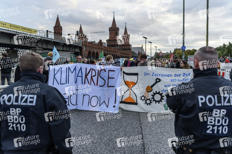 Aktivisten der Klimabewegung 'Extinction Rebellion' blockieren die Oberbaumbrücke. Berlin, 09.10.2019
