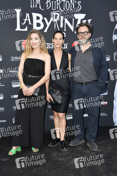 Sina Martens, Bibiana Beglau und Uli Hanisch bei der Premiere der internationalen Ausstellung 'Tim Burton's Labyrinth' in der Radsetzerei auf dem RAW-Gelände. Berlin, 18.07.2024
