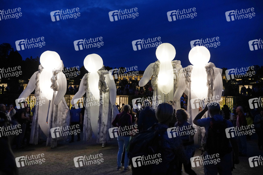 Company Quidam's bei der Potsdamer Schlössernacht 2021 im Schlosspark Sanssouci. Potsdam, 21.08.2021