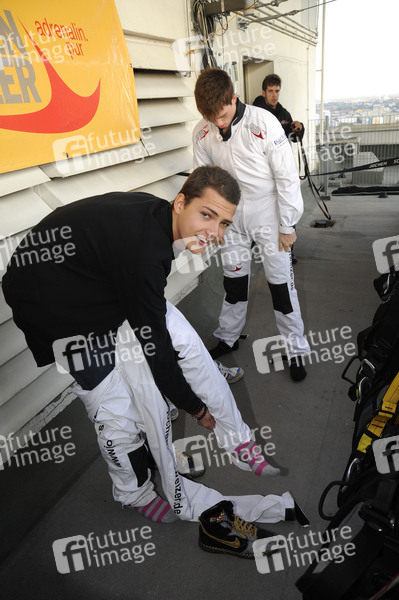 Base Flying von Jochen Schweizer mit den Hauptdarstellern von 'Gangs' auf dem Park Inn Hotel am Alexanderplatz in Berlin