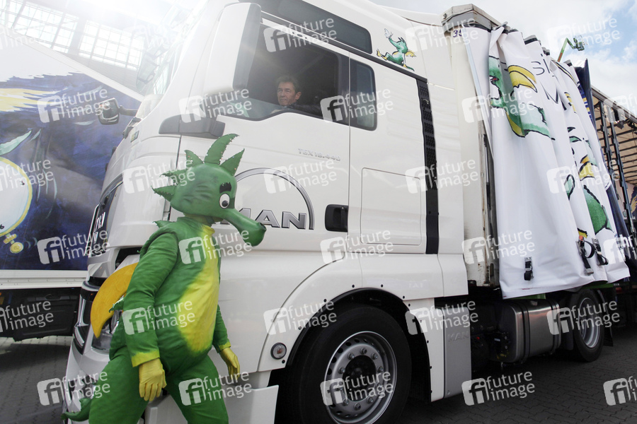 Symbolische Übergabe der MAN-Truckschlüssel an Peter Maffay anlässlich der Übergabe der gesamten Tourflotte von 15 Trucks mit Trailern und 2 Bussen für die 'Tabaluga und die Zeichen der Zeit' Deutschlandtour auf der IAA, Hannover