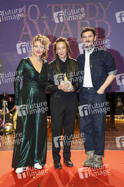 Tricia Tuttle, Celine Sciamma und Michael Stütz bei der Verleihung des 40. Teddy Award 2026 auf der Berlinale 2026 / 76. Internationale Filmfestspiele Berlin in der Volksbühne. Berlin, 20.02.2026