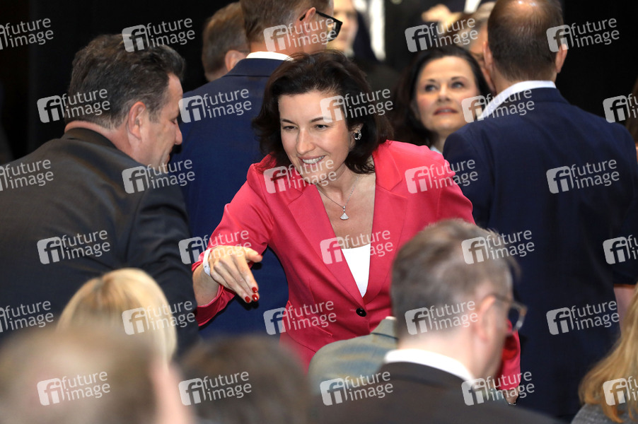 Dorothee Bär bei der Unterzeichnung des Koalitionsvertrages zwischen CDU, CSU und SPD im Gasometer Schöneberg. Berlin, 05.05.2025