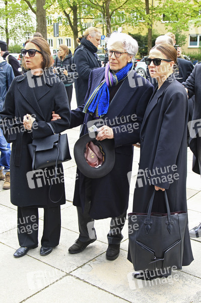 Sarah Lena Herzsprung, Bernd Herzsprung und Hannah Herzsprung bei der Trauerfeier für Fritz Wepper in der Herz Jesu Kirche in München-Neuhausen. München, 10.04.2024
