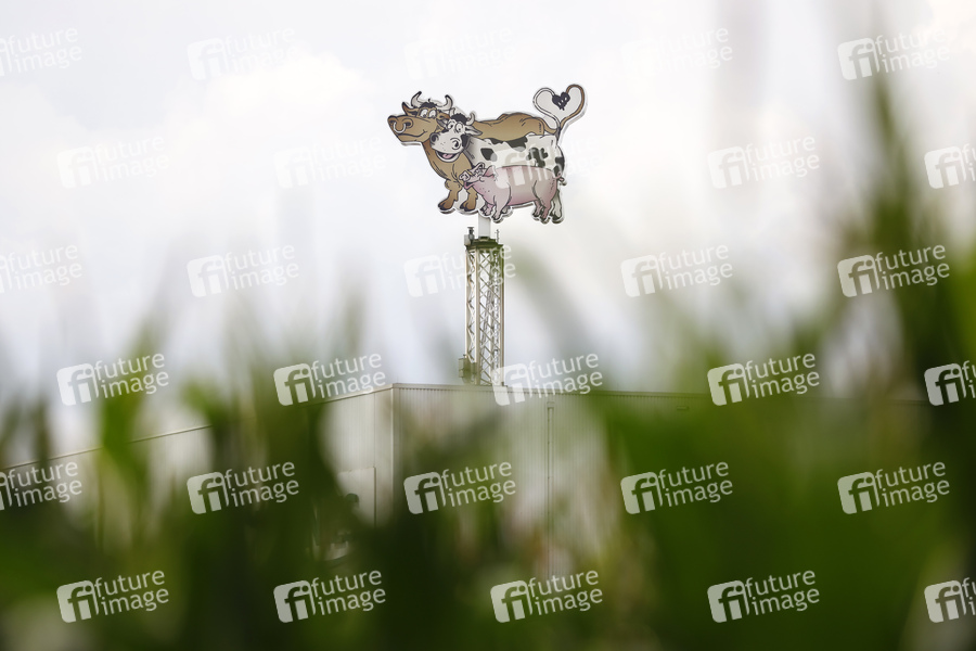Logo der Lebensmittelfirma Tönnies am Hauptsitz in Rheda-Wiedenbrück. Der Fleisch-Konzern will die Schlacht- und Zerlegefirma Lazar übernehmen. Rheda-Wiedenbrück, 02.08.2020