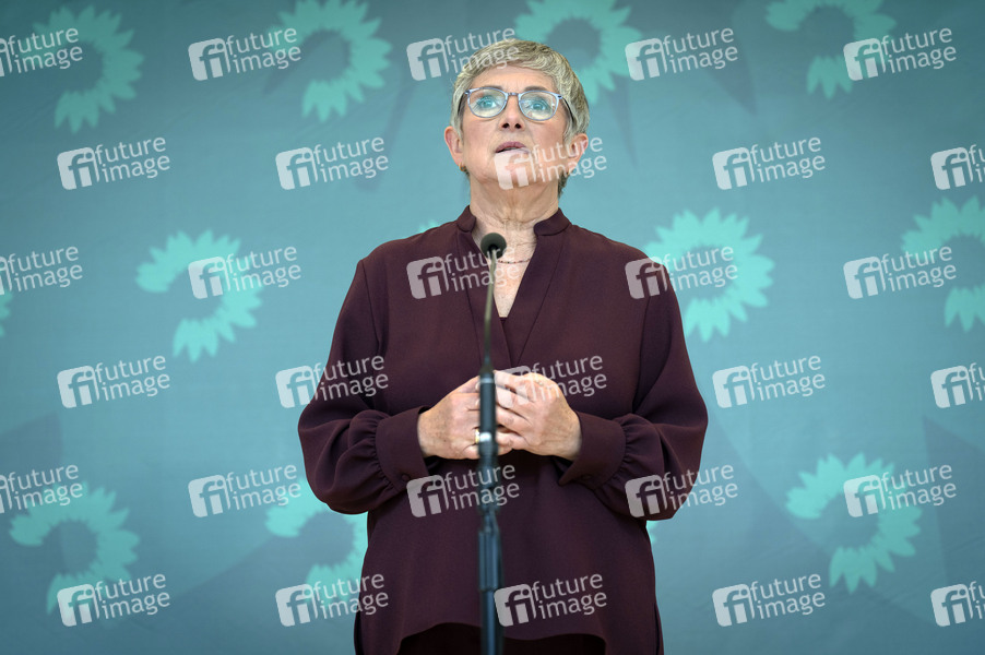 Britta Haßelmann bei einem Pressestatement zur Fraktionssitzung der Bündnis 90/Die Grünen-Bundestagsfraktion im Reichstagsgebäude. Berlin, 07.10.2025