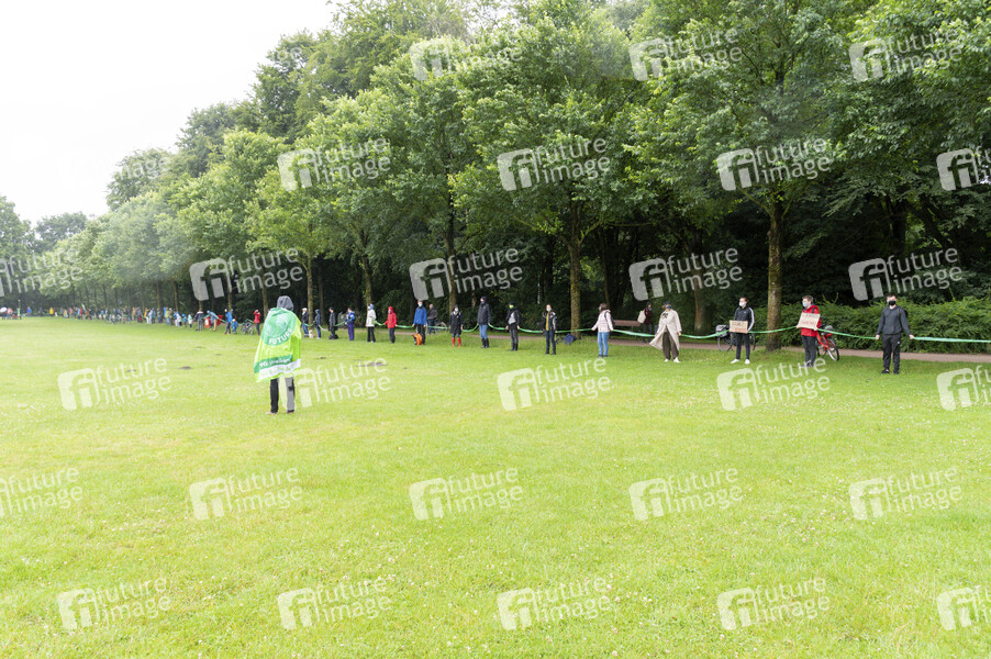 Menschenkette von rund 220 Aktivisten von Fridays for Future gegen das Kohleausstiegsgesetz. Hamburg, 10.07.2020