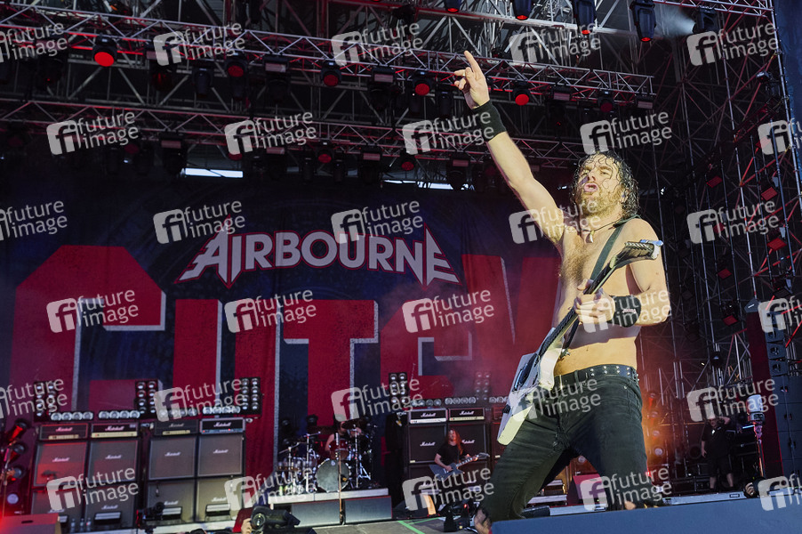 Joel O'Keeffe von Airbourne live auf dem Summerside Festival 2025 beim Flugplatz. Grenchen, 28.06.2025