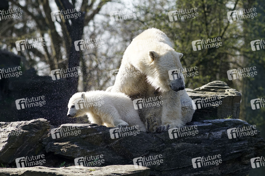Eisbärin Hertha und Mutter Tonja bei ihrem ersten Ausflug nach der Namensgebung im Tierpark Berlin. Berlin, 02.04.2019