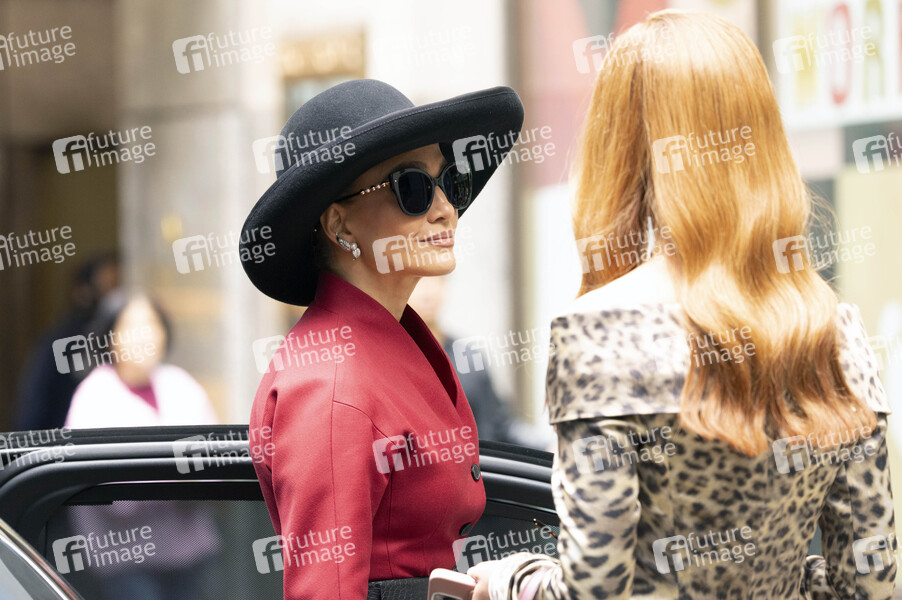 Jennifer Lopez bei den Dreharbeiten zum Kinofilm 'The Last Mrs. Parrish' am Rockefeller Center. New York, 10.10.2025